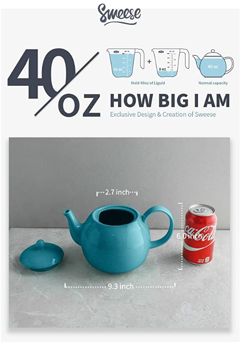 The porcelain teapot is PROUDLY FDA approved and made of durable porcelain, a type of premium LEAD-FREE and NON-TOXIC ceramic, chip-resistant and more sturdy than stoneware. The handle works for nearly all hand sizes. The lid has the D-shape and the lip catch so the lid doesn’t fall off when you pour. A lip on the end of the pouring spout helps prevent drips.