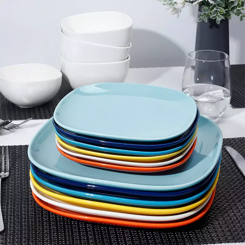 Combines square and a variety of lively and vibrant colors in a dynamic contemporary design. Our durable porcelain plate resists chips and stains and is safe to use in the dishwasher, easily transitions from microwave and oven to casual meals or formal tables. Complete your dining and entertaining collection with our Square Porcelain Bowls.
