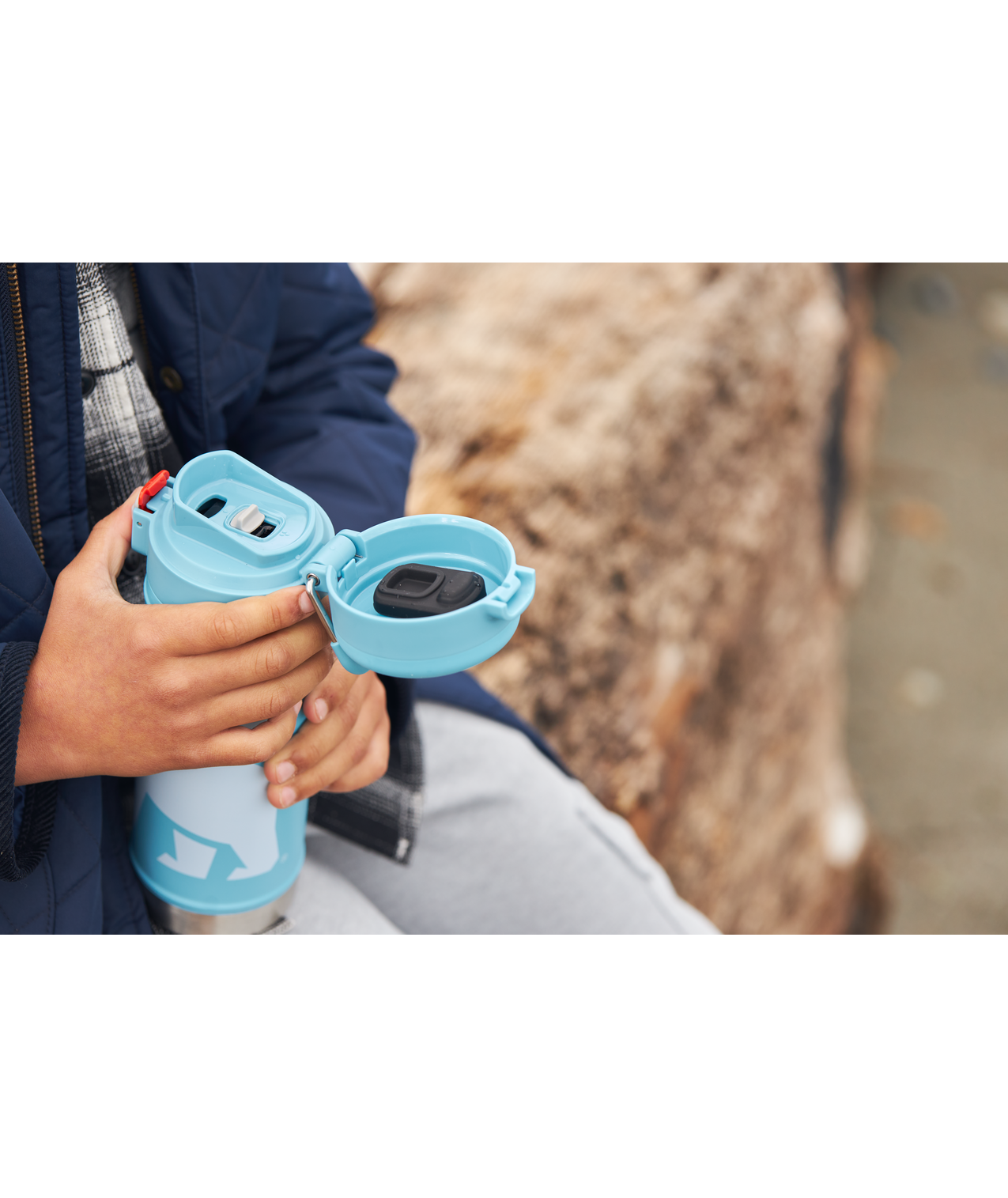 Hydration is key for all wild imaginations. Featuring bright colors and Stan the Bear, this bottle is a durable hydration hero. Smaller hands will love the ergonomic design and rotating handle. Plus, the built-in flip straw makes sipping a breeze. Snap it closed for leakproof packability. And Stanley’s double-wall insulation keeps the beverage ice-cold all day.